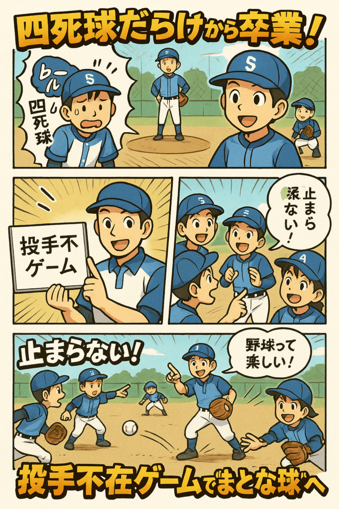 四死球が続きがちな低学年の試合でも、「野球は楽しい」「ちゃんと試合になる」――そんな実感を子どもたちに与えてくれるのが、愛知の強豪チームが取り入れている“投手不… -