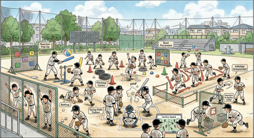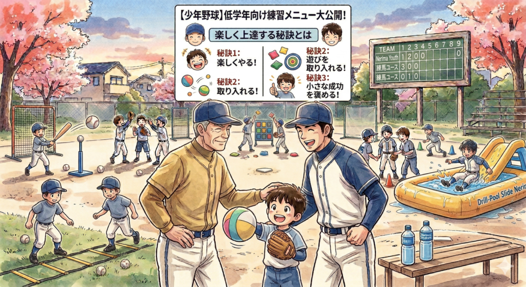 はじめに 少年野球チームの活動は、子どもたちに多くの経験と成長の機会を与えてくれます。低学年の選手たちにとって、練習は単なる技術の習得以上の意味を持ちます。楽しみながら基礎を身につけ、チームワークやスポーツマンシップを学ぶことができるので... -