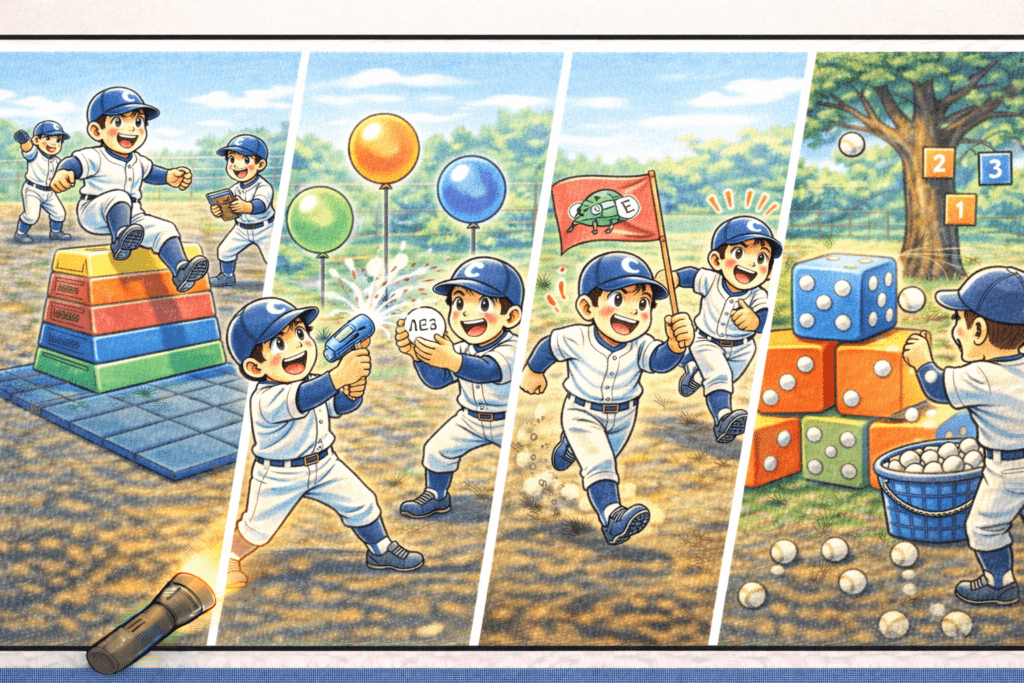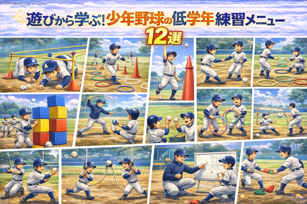 はじめに 少年野球では、選手の年齢や技術レベルに合わせた適切な練習メニューが重要です。低学年の選手にとって、技術の習得はもちろん大切ですが、それ以上に楽しみながら野球に親しむことが何より重要です。本記事では、低学年の選手に人気の高い練習メ... -
