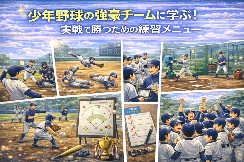はじめに 少年野球は子どもたちの健全な育成と競技力向上の場として重要な役割を果たしています。そのため、強豪チームの練習メニューはたいへん参考になります。本ブログでは、様々な強豪チームの練習方法を紹介し、効果的な練習メニューを探っていきます... -