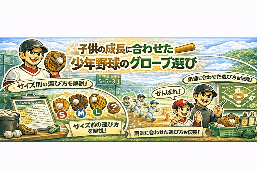 はじめに 少年野球は子供たちにとって大切な経験の場です。適切なグローブを選ぶことは、野球を上手に楽しむための第一歩となります。グローブの選び方には様々な側面があり、子供の年齢や技術レベル、使用目的などを考慮する必要があります。この記事では... -