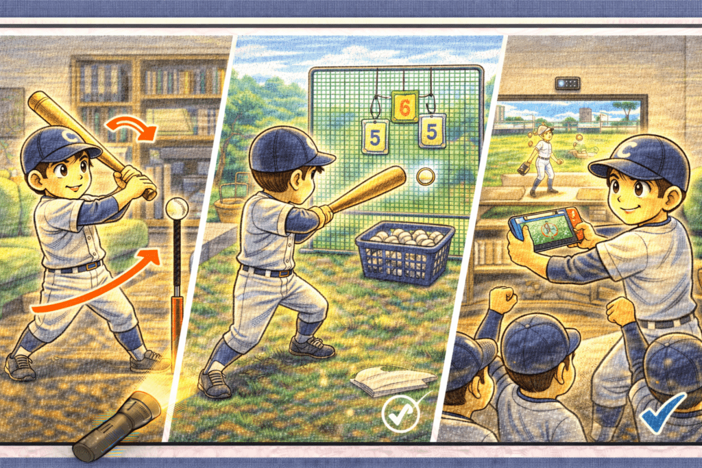 はじめに 少年野球の上達には、チーム練習だけでなく自主練習も欠かせません。特にバッティングは、毎日コツコツと練習を重ねることが大切です。自宅でもできる様々な練習方法があり、それらを活用することで、ミート力やタイミングなどのスキルアップが期... -
