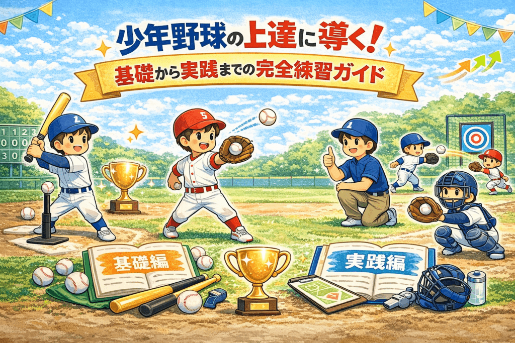 はじめに 少年野球の練習には、体力作りから打撃、投球、守備まで、さまざまな要素が含まれます。適切な練習方法を身につけることで、子供たちは野球の基本を着実に学び、能力を伸ばすことができます。本記事では、少年野球の上達に欠かせない練習方法につ... -