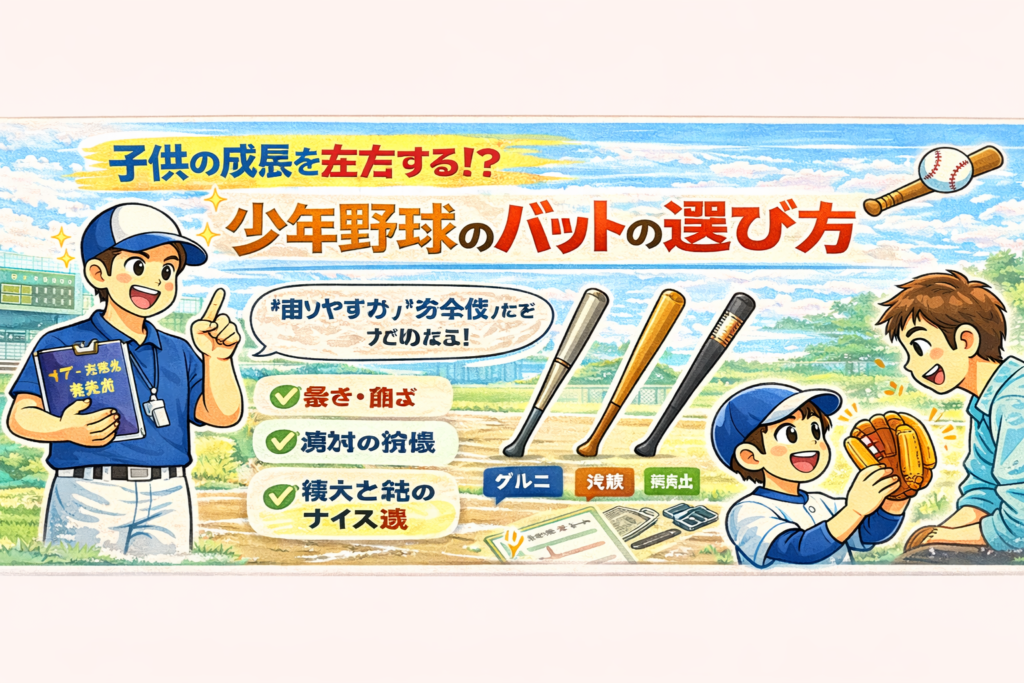 はじめに 少年野球は子供たちの健全な成長に大きな役割を果たしますが、適切な用具の選択は非常に重要です。中でもバットの選び方は、安全性とパフォーマンスの両面から慎重に行う必要があります。本日は、少年野球のバットの選び方について詳しく解説して... -