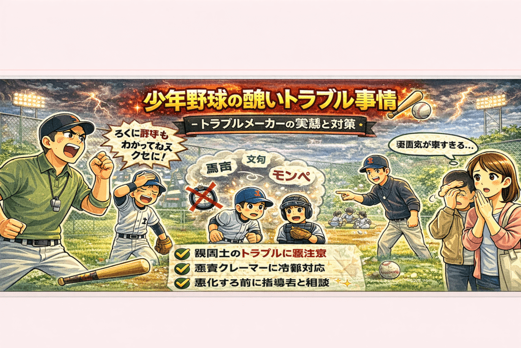少年野球は多くの子どもたちにとって、スポーツの楽しみやチームワークの大切さを学ぶ貴重な場所です。しかし、この素晴らしい経験を提供する過程で、時として予期せぬトラブルが起こることがあります。特にコーチや保護者、そして他の指導者間で起こるト... -