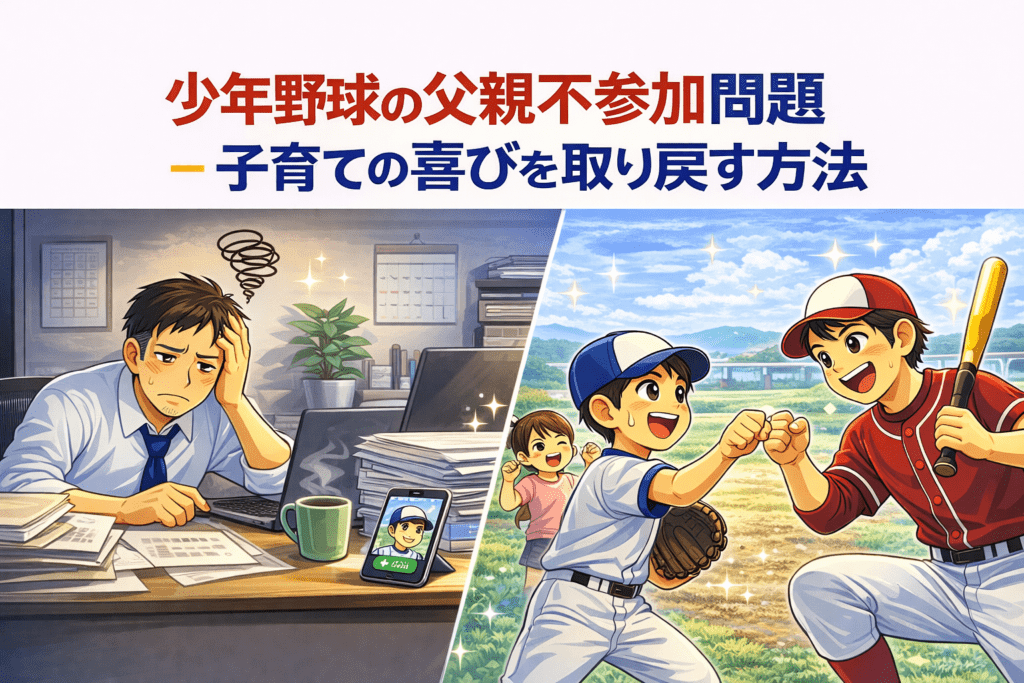 はじめに 少年野球は子供たちの健全な成長に大きな役割を果たしてきました。しかし近年、父親の不参加が課題となっています。父親の積極的な関与は子供の成長にとって欠かせない存在です。この記事では、少年野球における父親不参加の問題点と対策について... -
