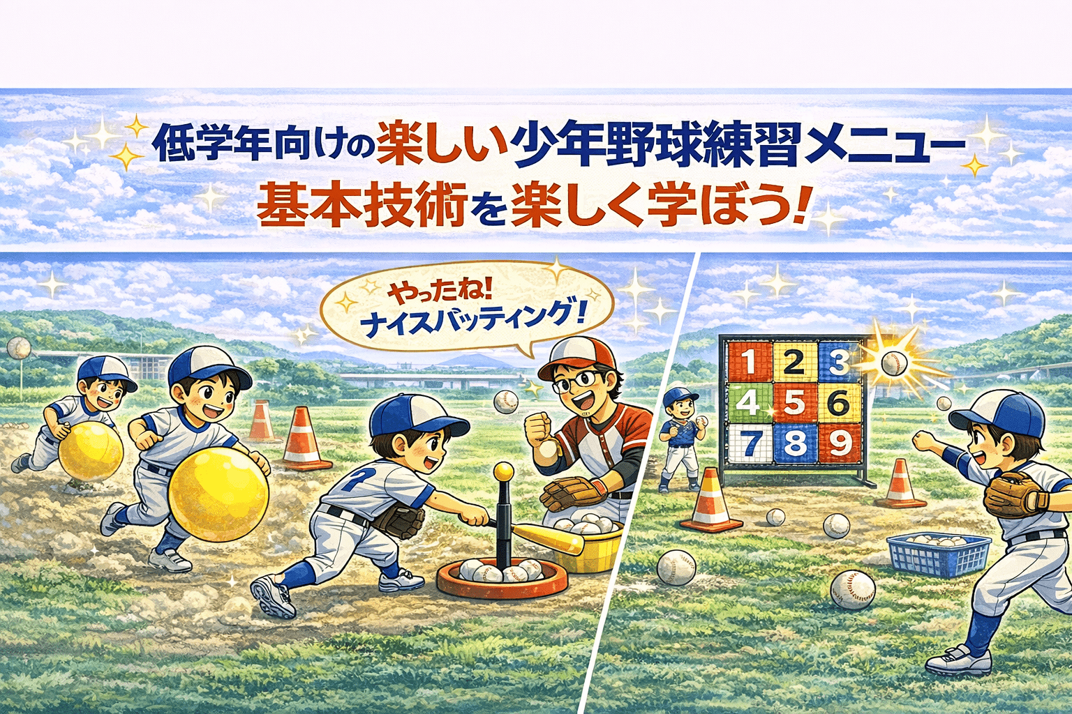 少年野球の低学年の子供たちには、基本的な守備練習を通じて野球の楽しさや守備の重要性を教えることが大切です。以下に、低学年向けの守備練習メニューのいくつかをご紹介します。