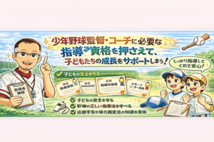 資格取得は、指導者としてのスキルアップや信頼性向上のために積極的に取り組むことをおすすめします。正しい知識を学び、子どもたちに適切な指導を行うことで、健全な少年野球チームの活動を支援しましょう。