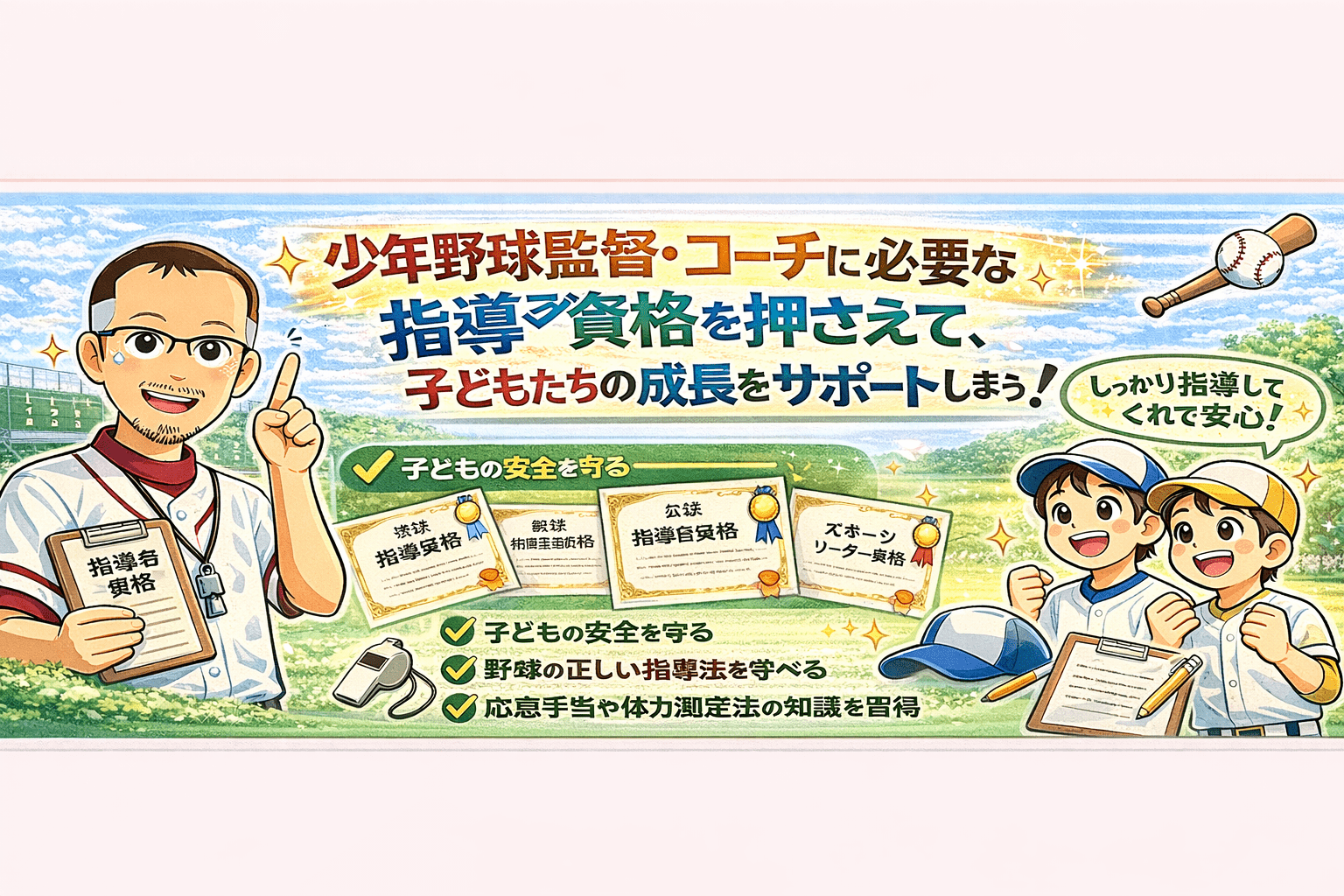 ただし、少年野球チームの監督になるために最も重要なのは、資格ではなく子どもたちの成長を支える情熱と責任感です。資格取得は自己啓発の手段として役立ちますが、最終的には子どもたちのために尽くす意識が大切です。