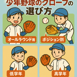 少年野球を始めるお子さんには、適切なグローブを選ぶことが非常に重要です。サイズやフィット感、素材の柔らかさなどに注意を払いながら、お子さんのレベルやポジションに合わせて、信頼性の高いメーカーのグローブを選びましょう。また、内野手、外野手、投手など、ポジション別のグローブの特徴も理解しておくと良いでしょう。適切なグローブを選ぶことで、お子さんが野球を楽しみながら上達していけるはずです。グローブの選び方を参考に、お子さんに最適な1本を見つけてあげてください。