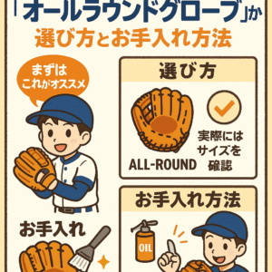 以上がオールラウンド用グローブの特徴です。オールラウンド用グローブは、野球内野のポジションで使用するだけでなく、練習用やスクールなどでも幅広く活用されています。皆さんの野球ライフをより快適にするために、ぜひオールラウンド用グローブを選んでみてください。