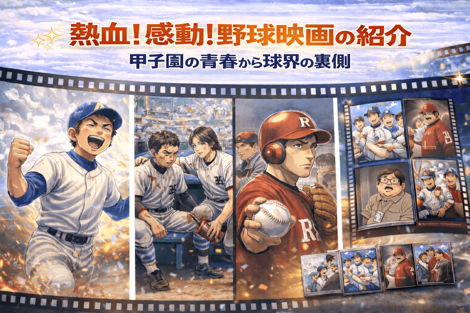 日本の野球映画は、高校球児の熱い青春物語がメインストリームで、甲子園への思いと部員同士の絆を描いている作品が多いのが特徴です。また、ユニークな設定で野球の魅力を伝える作品も存在します。