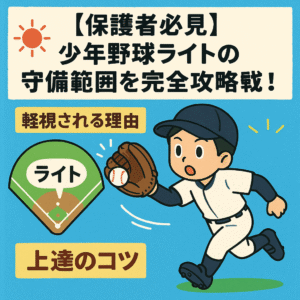 このブログでは、ライトが軽視される理由から始まり、基本的な守備範囲や立ち位置、求められる能力、さらには強肩を活かした守備法や実践的な練習方法まで、ライトのすべてを詳しく解説します。お子さんがライトを守ることになった保護者の方、指導者の皆さん、そして選手自身にとって役立つ情報をお届けします。