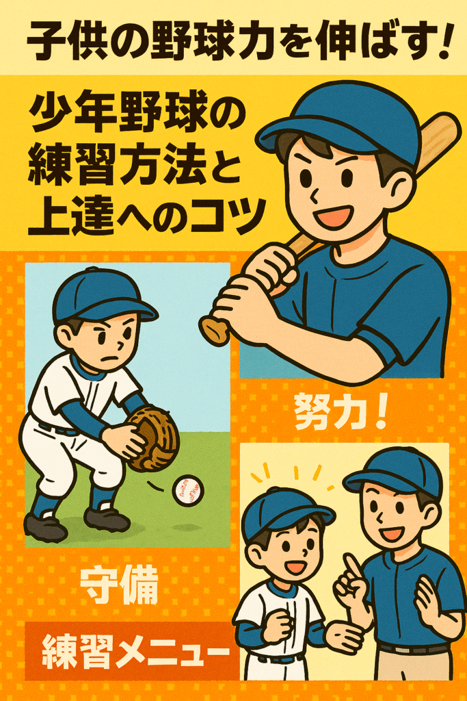 野球は精神的・身体的な面から多くのことを学べる魅力的なスポーツです。小さい頃からプレーを通して基礎を身につけることが大切です。本ブログでは、少年野球でプレーする子供たちを対象に、効果的な練習メニューやコツを紹介しています。家庭でも継続し... -